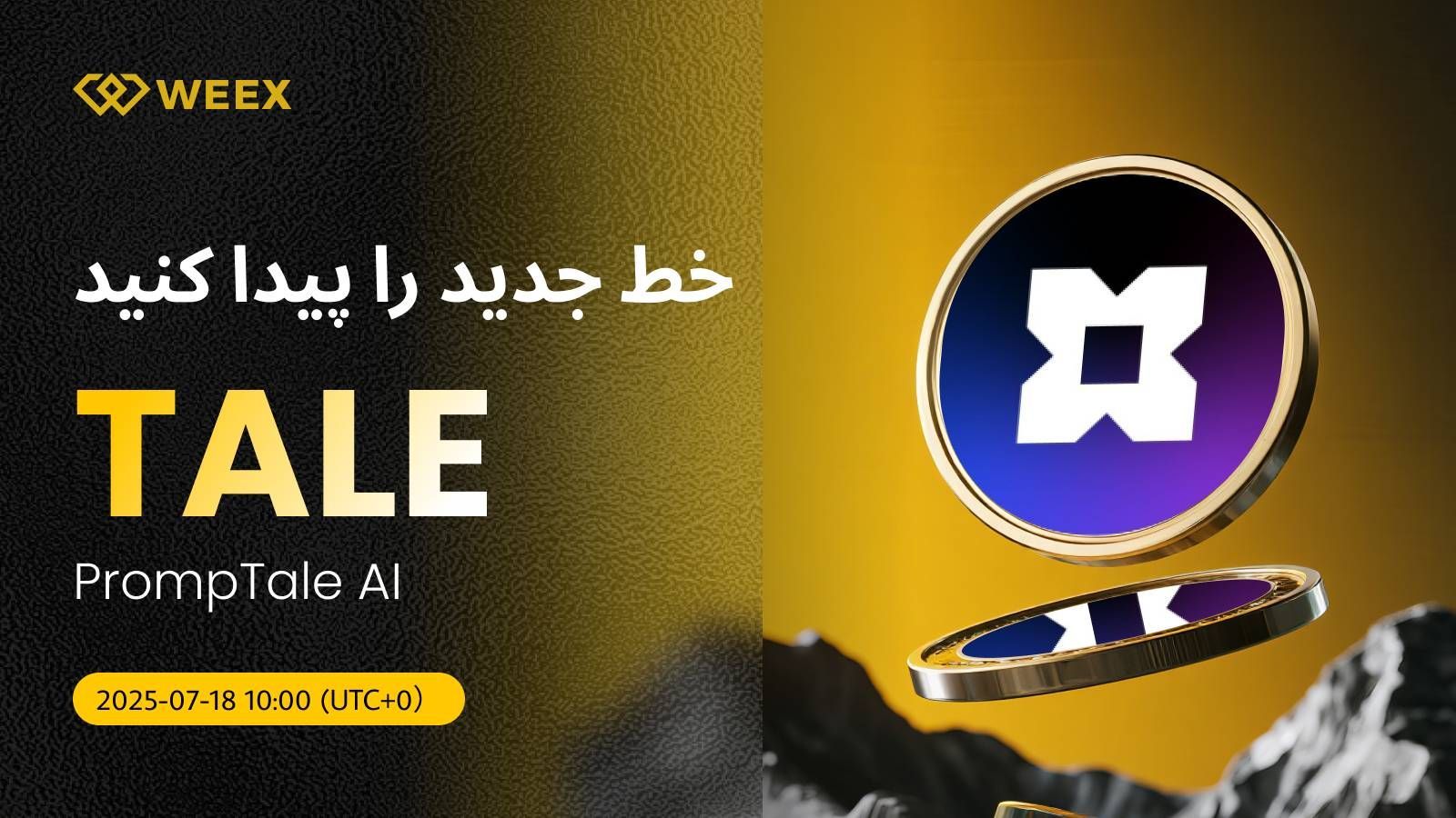 ما خوشحالیم که اعلام کنیم PrompTale AI (TALE) اکنون رسماً در معاملات لحظهای WEEX در دسترس است! از این پس، میتوانید TALE/USDT را به راحتی در پلتفرم WEEX معامله کنید. جزئیات به شرح زیر است: