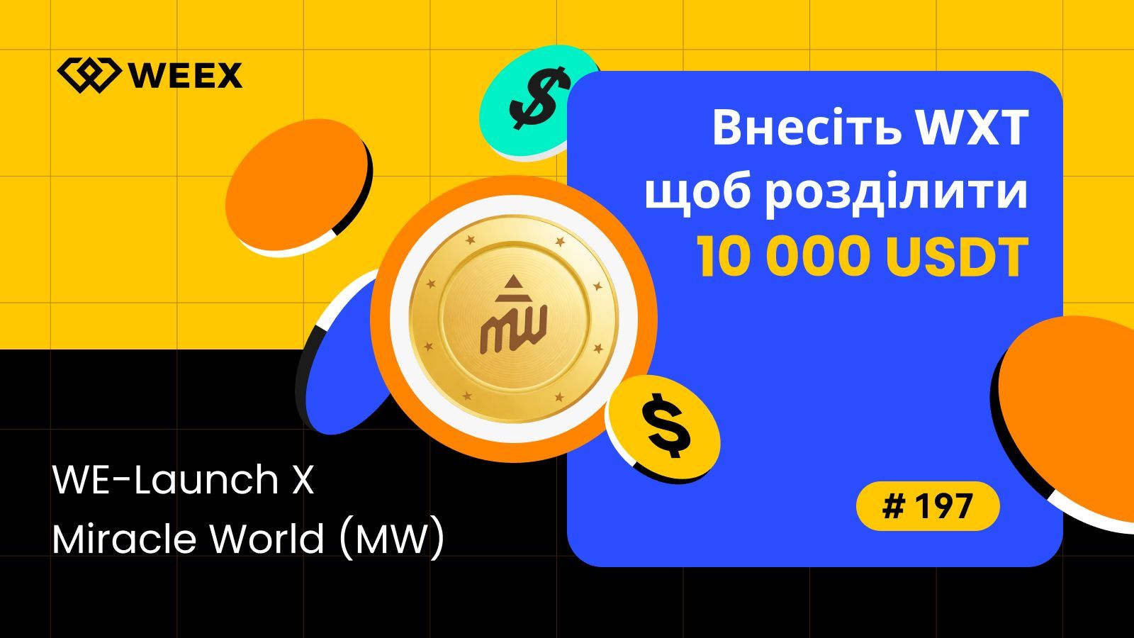 WEEX WE-Запуск - лістинг Miracle World (MW) та аірдропи на 10 000 USDT!