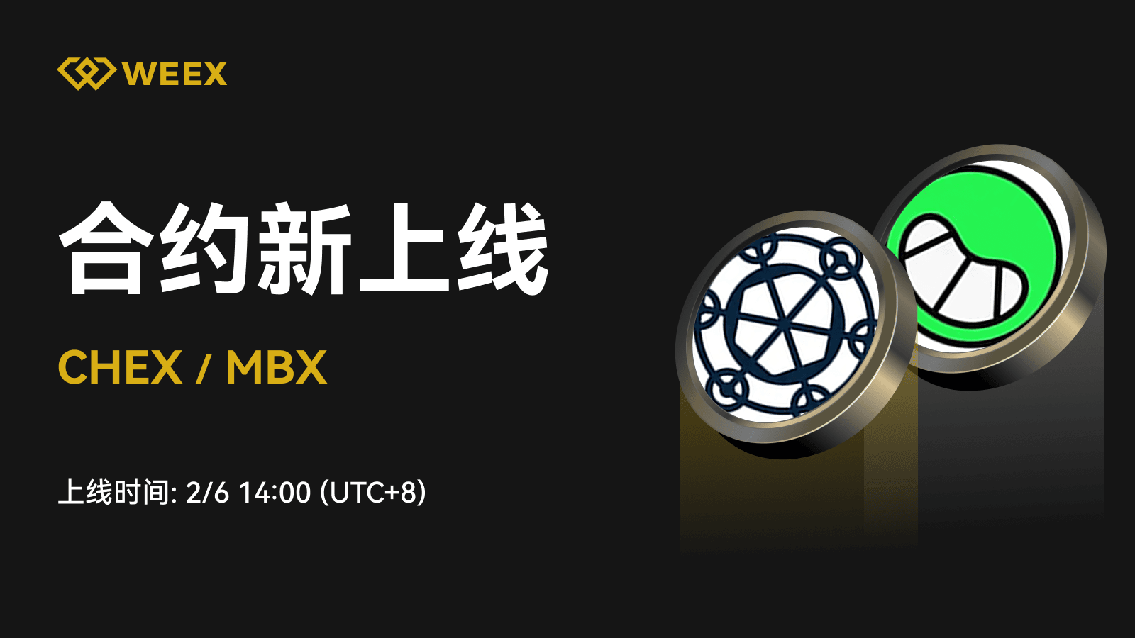 WEEX合约将于至2025年2月6日14:00 [UTC+8]上线 CHEX、MBX U本位合约。