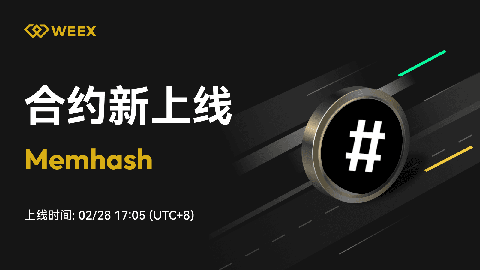 WEEX合约将上线Memhash U本位合约 - 2/28 17:05 UTC+8