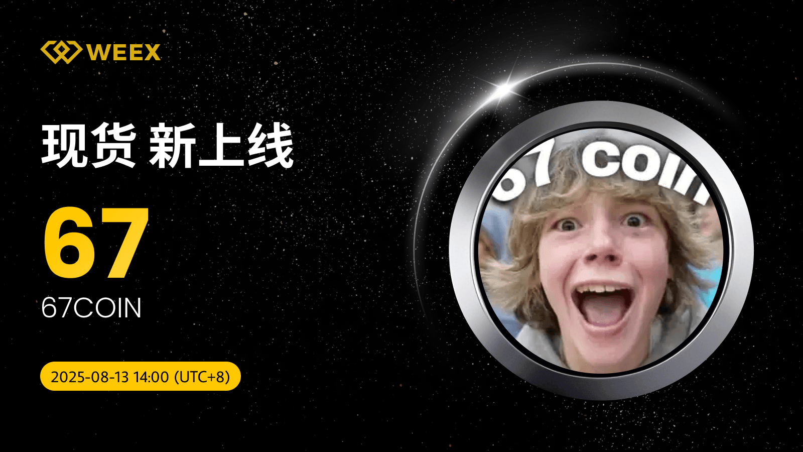 我们很高兴地宣布 67COIN (67) 现已正式登陆WEEX现货交易区!即日起,您可在WEEX平台进行 67/USDT交易,详情如下: